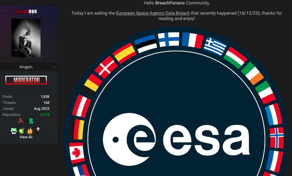 Реакцијата на ESA следува откако хакер со онлајн прекар „888“ на сајбер-криминалниот форум BreachForums тврдел дека на 18 декември извршил пробив во системите на агенцијата.