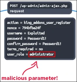 Според набљудувањата на Wordfence, напаѓачите испраќаат специјално изработено барање кон admin-ajax.php со параметар user_role=administrator, со што креираат лажни администраторски сметки на таргетираните веб-страници.