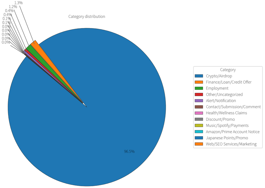 „Со комбинирање на постара, но сè уште многу ефикасна тема на инвестициска измама со модерни AI технологии, напаѓачите успеаја да лансираат големи и многу убедливи сајбер кампањи,“ велат Infoblox и Confiant. „Приближно 96% од спам сообраќајот поврзан со Keitaro промовираше шеми за празнење крипто-паричници, главно преку лажни ‘airdrop’ или ‘giveaway’ мамки фокусирани на AURA, SOL (токен на Solana), Phantom (паричник) и Jupiter (DEX/агрегатор).“