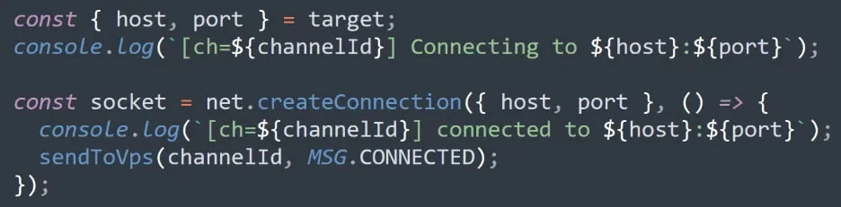 RoadK1ll не користи inbound listener на компромитираниот систем. Наместо тоа, воспоставува outbound WebSocket конекција кон инфраструктура контролирана од напаѓачот, која потоа се користи како тунел за пренос на TCP сообраќај по потреба.