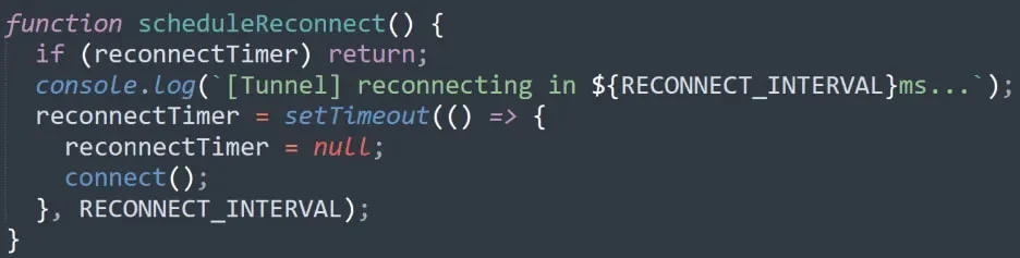 Доколку каналот се прекине, алатката се обидува повторно да го воспостави WebSocket тунелот преку механизам за реконекција, овозможувајќи им на напаѓачите да одржат постојан пристап без да создаваат дополнителен „шум“ преку рачна интервенција.
