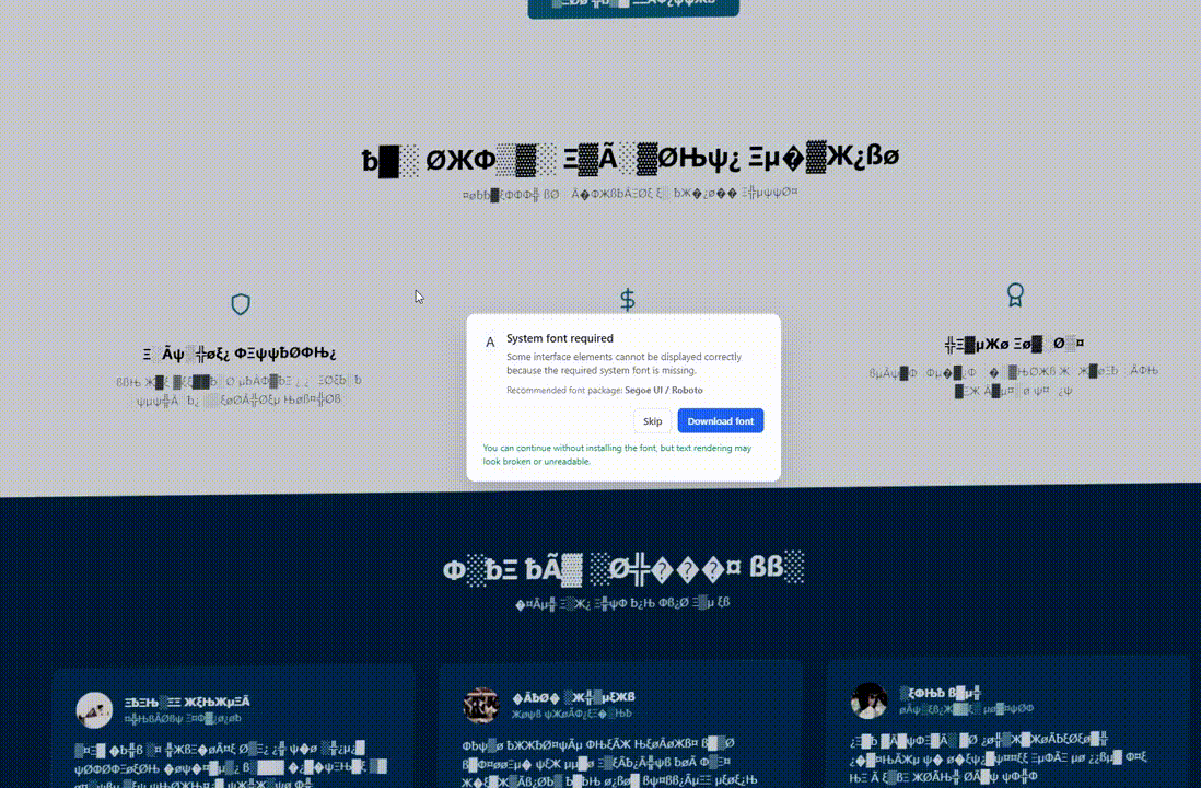 Ова прави страницата да изгледа „расипана“ и создава услови на жртвата да ѝ се понуди „решение“ во форма на инсталирање ажурирање на прелистувачот, преземање системски фонт или внесување (лепење) нешто во командниот прозорец.