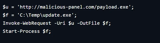 Доколку жртвата ги следи инструкциите, PowerShell команда се додава во клипбордот преку JavaScript код. Извршувањето на таа команда доведува до преземање злонамерен товар (payload).