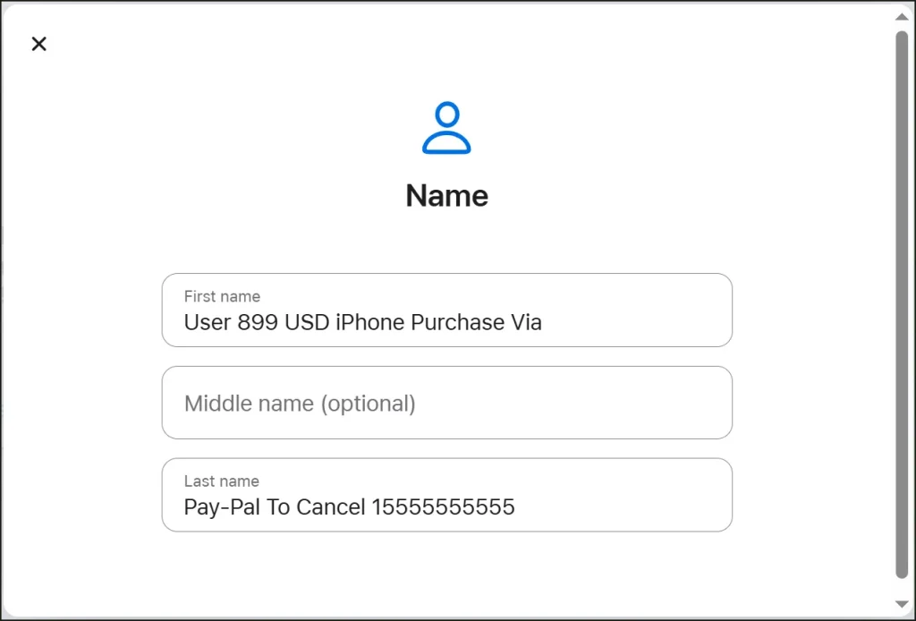 BleepingComputer успеа да го реплицира ова однесување со создавање тест Apple сметка и додавање сличен callback фишинг текст во полињата за име и презиме. Ова е затоа што секое поле не може да ја содржи целата измамничка порака.