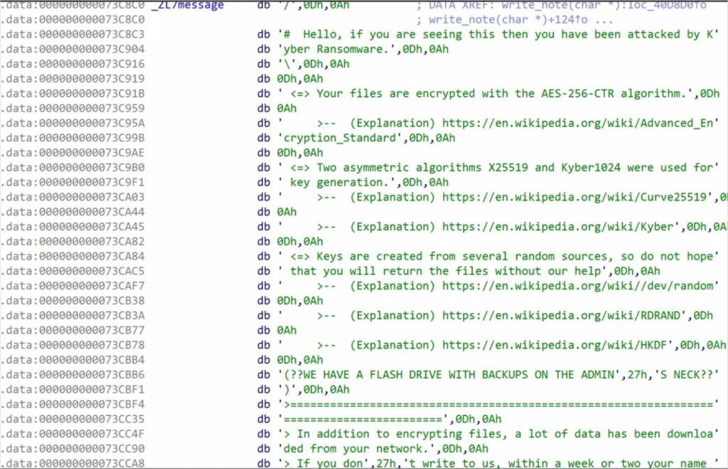 Нова рансомвер операција наречена Kyber таргетира Windows системи и VMware ESXi крајни точки во неодамнешни напади, при што една варијанта користи Kyber1024 пост-квантна енкрипција.